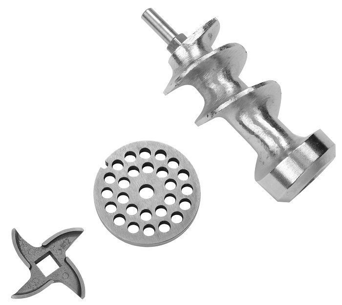 Корпус выполнен из алюминия, лоток из нержавеющей стали, мясорубочная часть – из хромированного металла. Установка настольная.