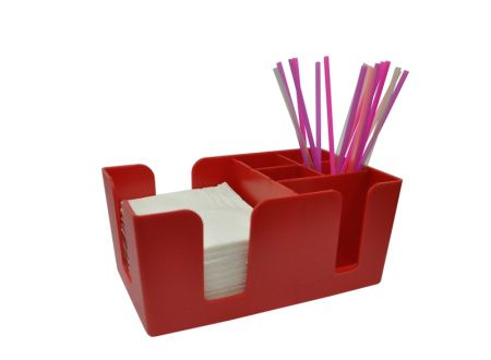 Применяется на предприятиях общественного питания и в торговле для хранения трубочек, салфеток и других барных принадлежностей.