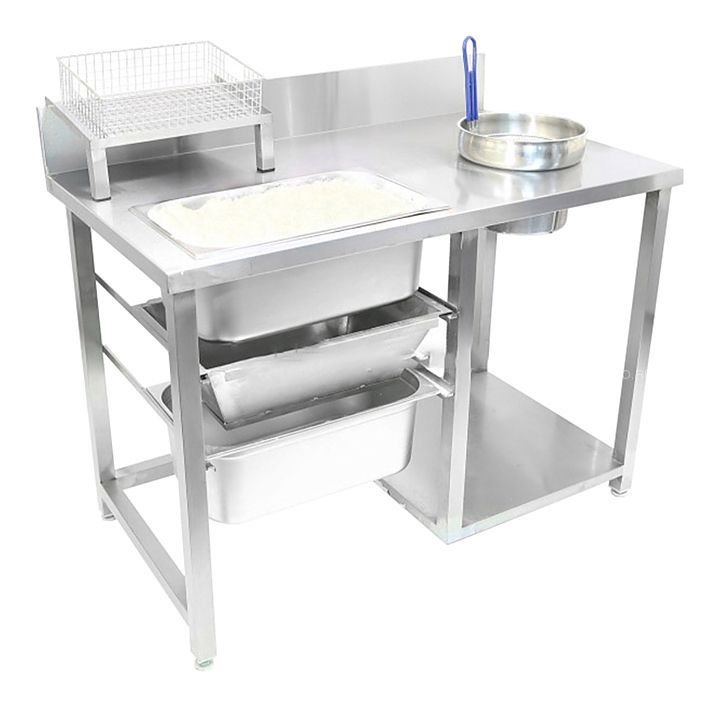 Панировочный стол с ручным просеиванием. Толщина столешницы 1,5 мм. Съемная полка под корзину.