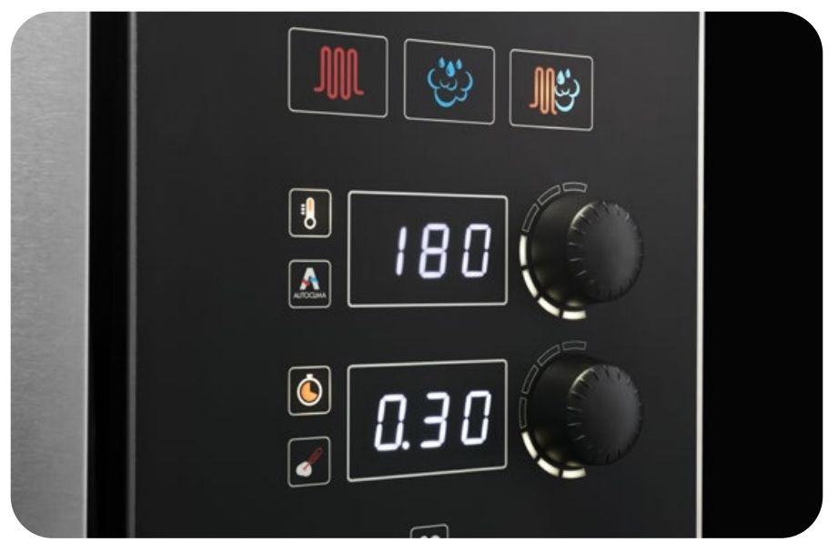 - буквенно-цифровой светодиодный дисплей высокой четкости для отображения значений температуры, функции Autoclima, времени и температуры в сердцевине;