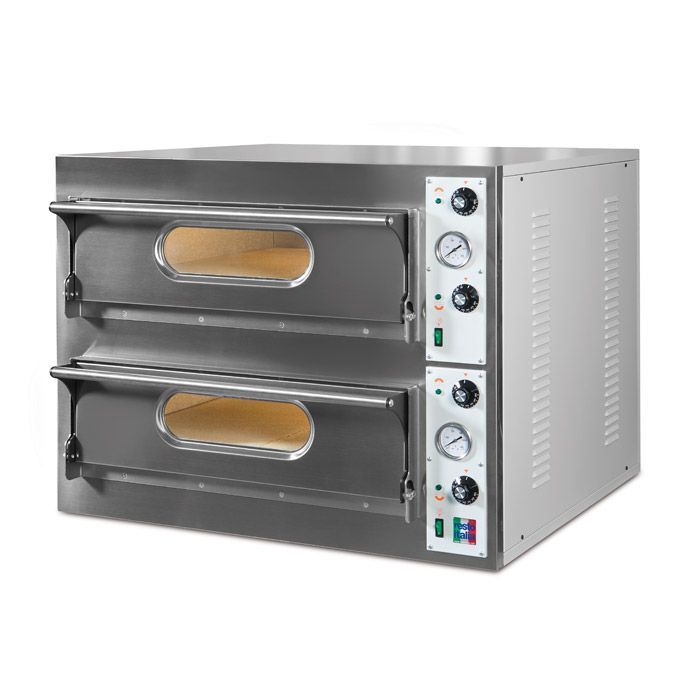 Корпус изготовлен из окрашенной стали, лицевая панель - из нержавеющей стали, теплоизоляция - из минеральной ваты. Оснащена механической панелью управления. Подходит для одновременного приготовления 12ти пицц диаметром 33 см.