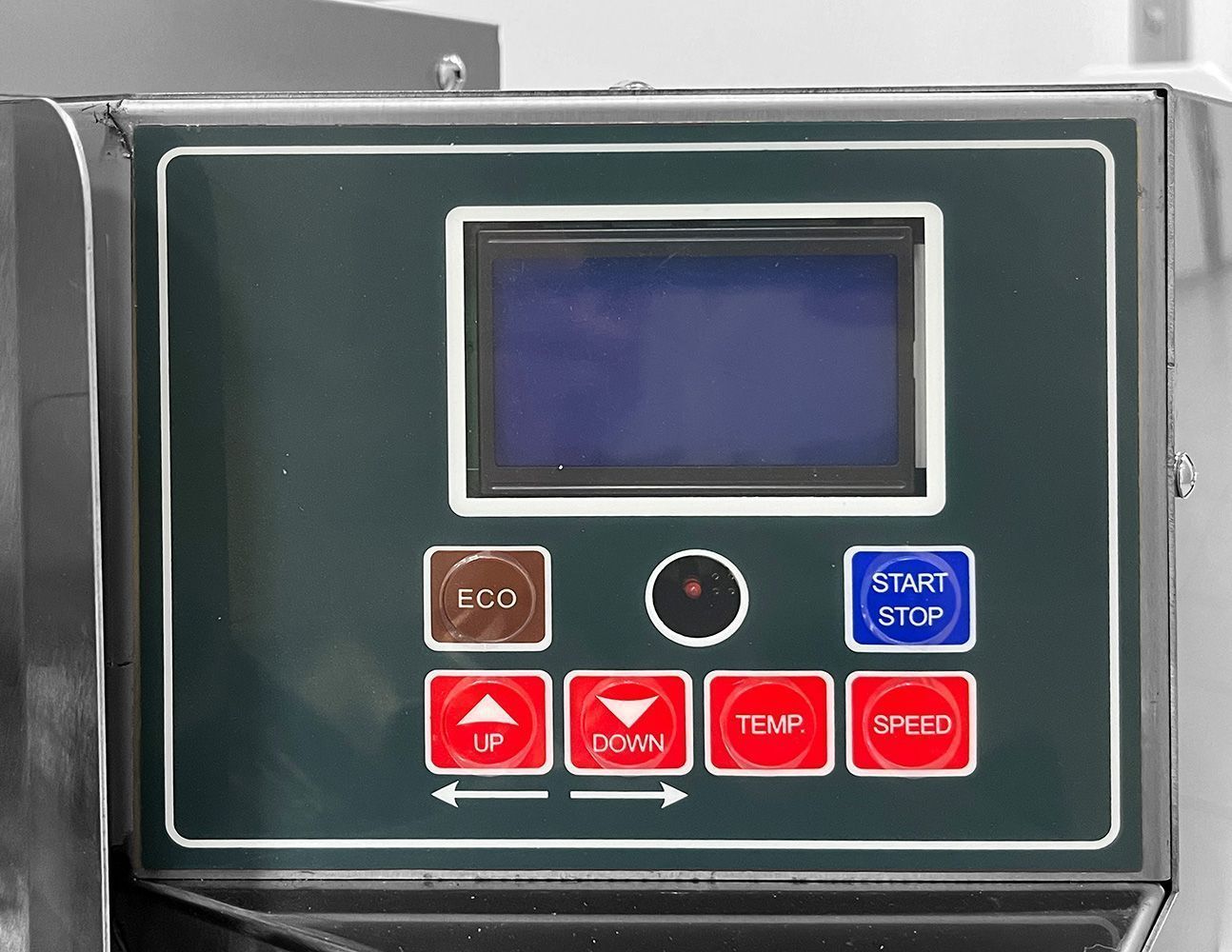- цифровая панель управления с регулированием температуры, скорости конвейера (время выпечки), направлением конвейера;