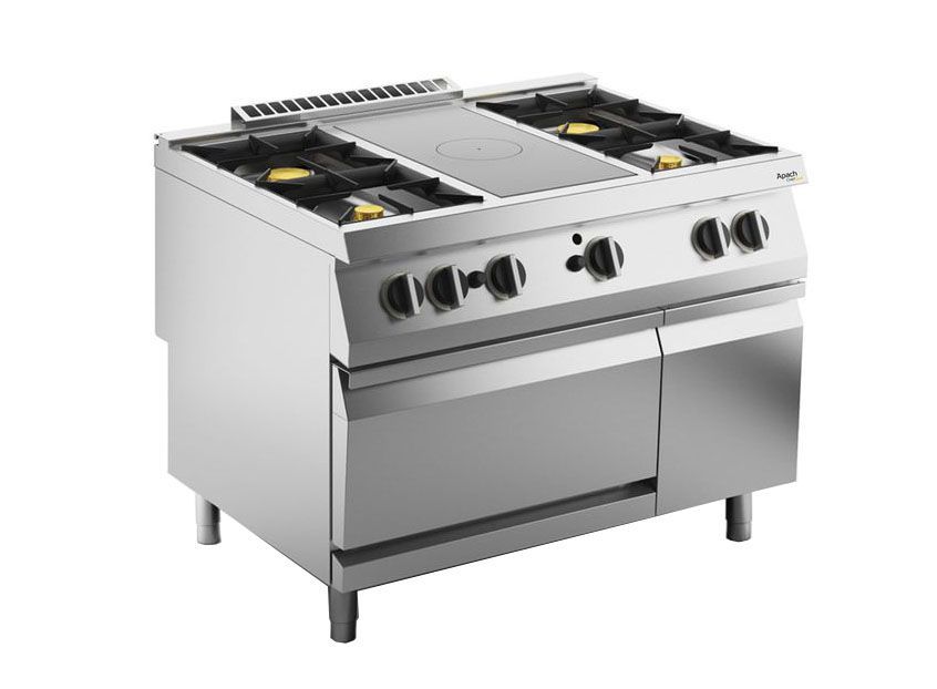 Плита газовая SLRSTG129R4FG производства APACH Chef Line (Италия) серии 900 предназначена для приготовления различных блюд в наплитной посуде. Подходит для различных предприятий общественного питания.
