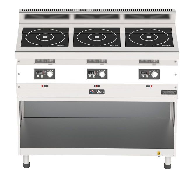 Плита индукционная Abat КИП-35Н-3,5 производства Abat (Чувашторгтехника) - представляет собой индукционную плита с 3 конфорками, которая используется со специальной посудой с магнитными свойствами (посуда из нержавеющей стали, алюминия с ферромагнитным дном и чугунная посуда). Подходит для приготовления блюд на предприятиях общественного питания, в кафе и ресторанах.