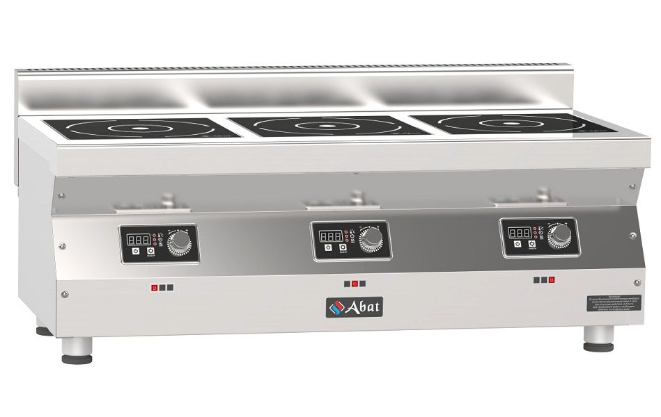Плита индукционная Abat КИП-35Н-5,0 производства Abat (Чувашторгтехника) - профессиональная индукционная плита с тремя конфорками, которая используется с посудой с магнитными свойствами (подходит чугунная посуда, посуда из нержавеющей стали и алюминия с ферромагнитным дном). Предназначена для приготовления различных блюд в кафе, ресторанах и на любых предприятиях общественного питания, .