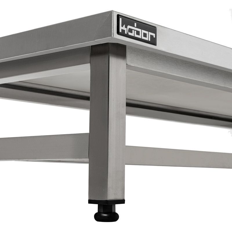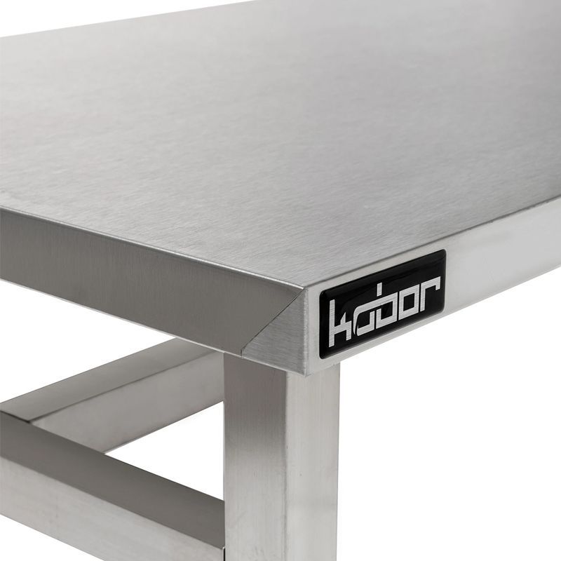 Изделие выполнено из нержавеющей стали, столешница - из нержавеющей стали aisi 430 с усилением ОСП. Опоры регуляторов высоты не подвержены коррозии во влажной среде. Изделие разборное и поставляется в упаковке для облегчения транспортировки и хранения.