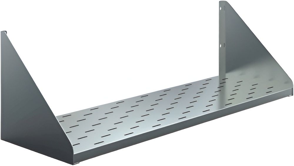 Полка настенная ПНП-П-7/4 (700х400х220) производства Assum (Россия) - открытая одноярусная перфорированная сборно-разборная полка серии «Премиум» с косынками вверх. Предназначена для предприятий общественного питания как система хранения непортящихся продуктов, полуфабрикатов и кухонной посуды (сковородок, тарелок, кружек и др.).