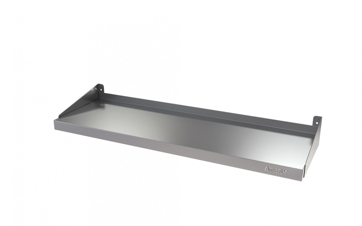Полка Atesy серии Стандарт имеет сплошную конструкцию. Выполнена из нержавеющей стали AISI430 толщиной 0,8 мм.