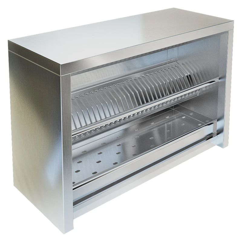 Изделие выполнено из нержавеющей стали AISI 304. Модель оснащена поддоном для сбора жидкости и накладками с вырезом "замочная скважина" для крепления к стене.