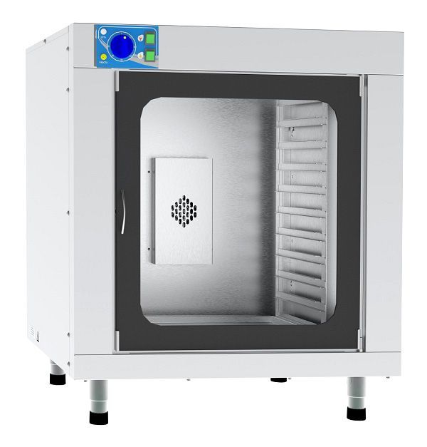 Время разогрева шкафа до рабочей температуры составляет 20 минут. Уровень влажности в объеме шкафа от 50 до 95%. Bмещает в себя 10 гастроемкостей. В ванну из нержавеющей стали можно залить до трех литров воды.