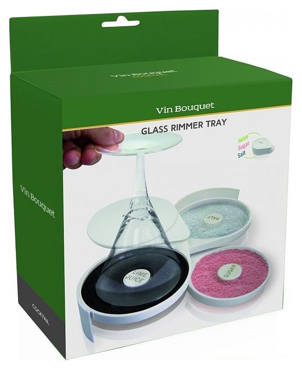 Оснащён несколькими отсеками с маркировкой, он позволяет легко распределять соль, сахар или другие ингредиенты для оформления края бокала, исключая смешение содержимого.