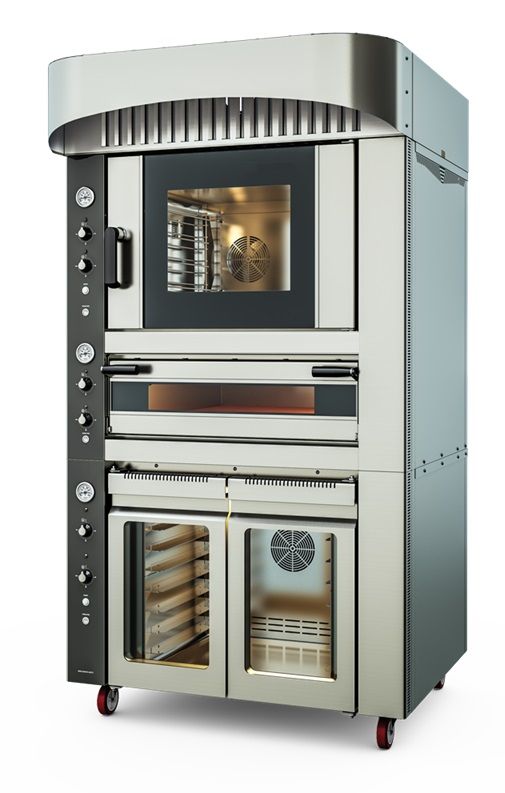 Печь состоит из: конвектомата вместимостью 6 ур.60*40 см, подовой печи под 2 противня 60*40 см, расстоечного шкафа 8 вместимостью 60*40 см и вытяжного зонта.