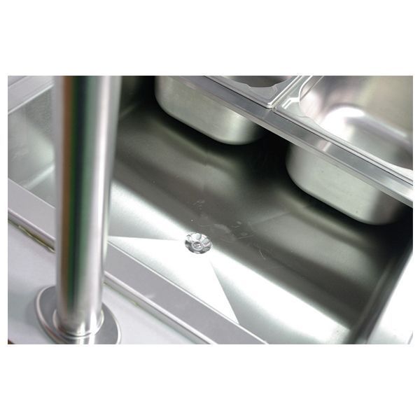Изделие выполнено из нержавеющей стали. Модель оснащена двумя разграничителями гастроемкостей длиной 53 см.