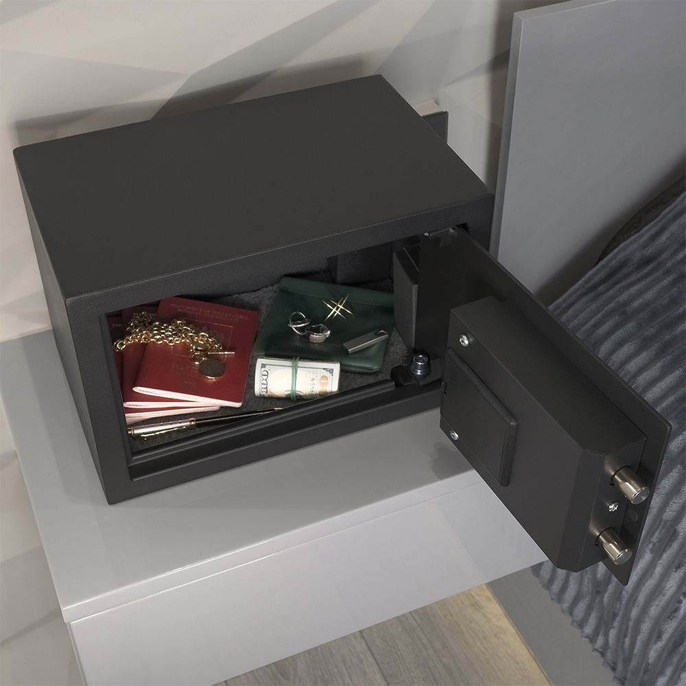 - серый коврик внутри сейфа защищает содержимое от царапин;