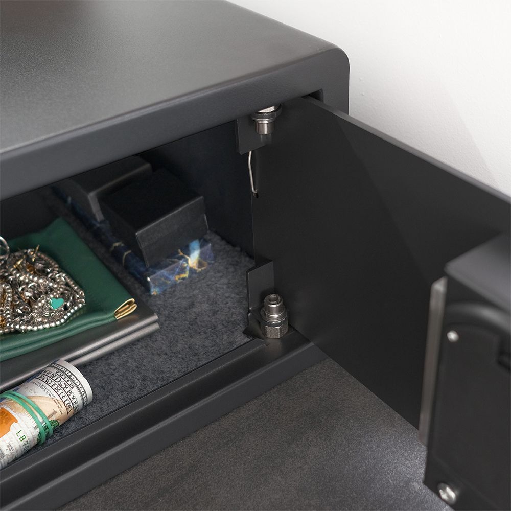 - серый коврик внутри сейфа защищает содержимое от царапин;