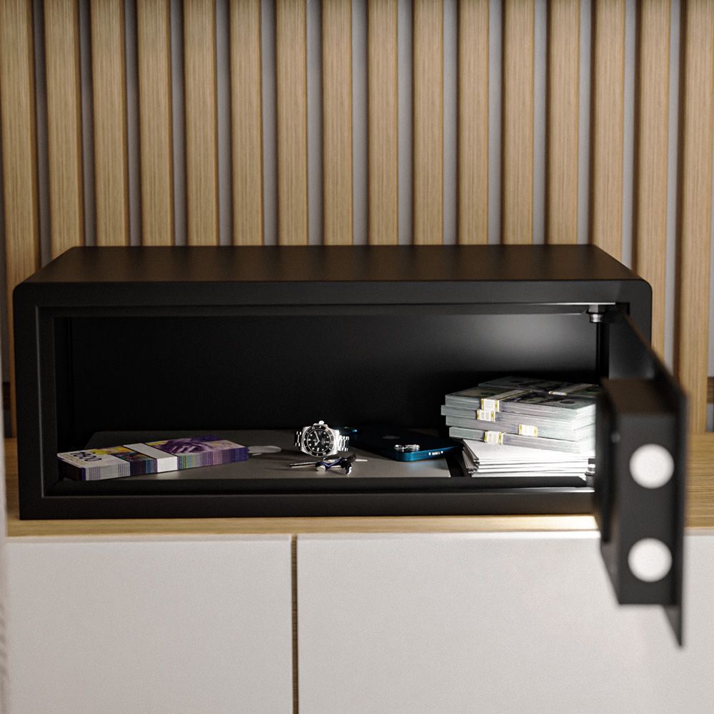 Сейф SF3-520-200 производства Meyvel (Италия) - универсальная модель с возможностью встраиваемой или отдельностоящей установки. Предназначен для безопасного хранения ценностей, документов и ноутбуков (до 17 дюймов). Отличается прочной конструкцией, лаконичным матовым чёрным дизайном и удобной электронной системой управления.