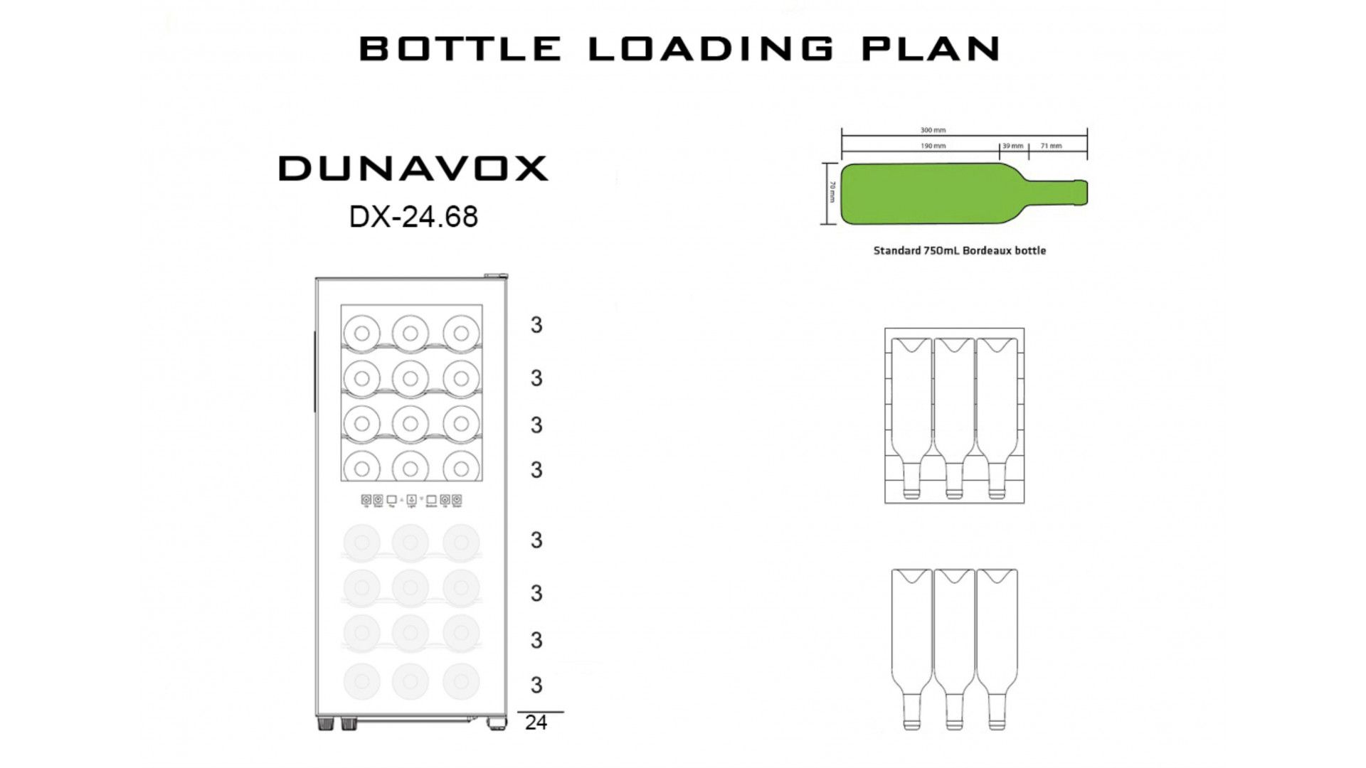 - вместимость: 24 бутылки (тип «бордо», 0,75 л);