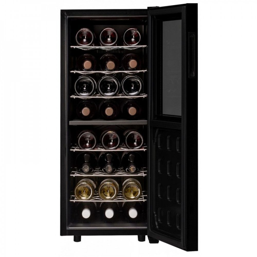 - вместительность: до 24 бутылок типа «бордо» (0,75 л) - подходит для небольших винных коллекций и домашнего использования;