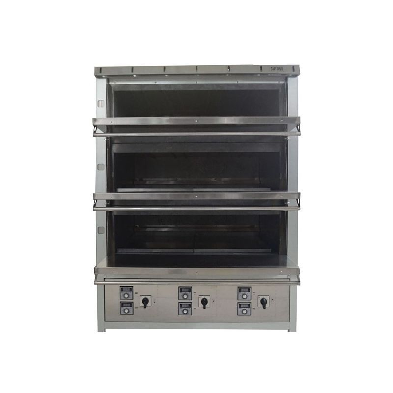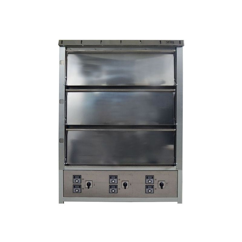 Изделие выполнено из оцинкованной стали, подставка - из металла окрашенного порошковой краской, лицевая панель и дверца изготовлены - из нержавеющей стали. Модель имеет внутри камеры две группы ТЭНов: верхние и нижние, для каждой группы ТЭНов свой терморегулятор, что позволяет отключать, либо тонко настраивать уровень температуры от 50 до 320℃.