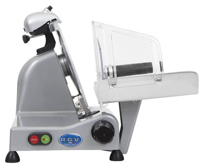 Слайсер Luxury 25 GS Prof производства R.G.V. (Италия) - профессиональный полуавтоматический слайсер серии PROF для точной и эффективной нарезки мяса, сыров, колбасных изделий и других продуктов питания на предприятиях общественного питания. Модель сочетает передовые инженерные решения, удобство обслуживания и надёжность, обеспечивая стабильную работу в условиях интенсивной эксплуатации.