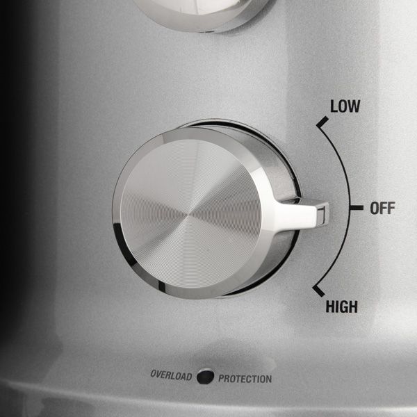 Имеет кувшин объёмом 2 литра с герметичной крышкой, что позволит хранить сок и удобно располагается в холодильнике. Большой загрузочный желоб диаметром 84 мм позволяет загружать фрукты и овощи крупными частями или целиком, что сократит время приготовления и уменьшит отходы.
