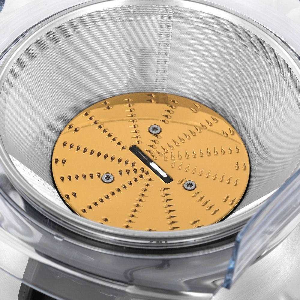 Широкий загрузочный желоб. Модель оснащена желобом диаметром 88 мм. Можно выжимать еще больше сока из целых фруктов и овощей.