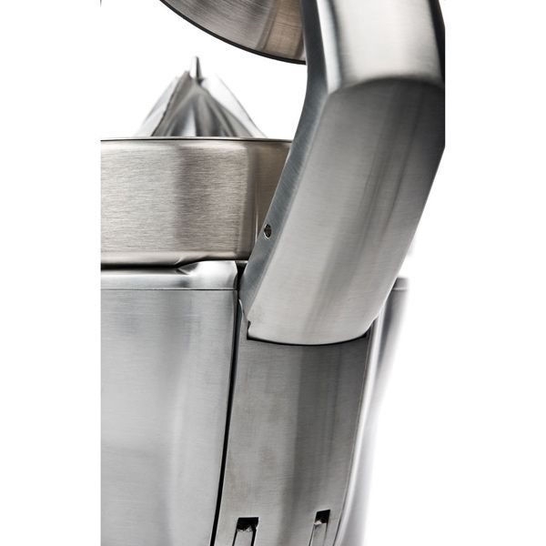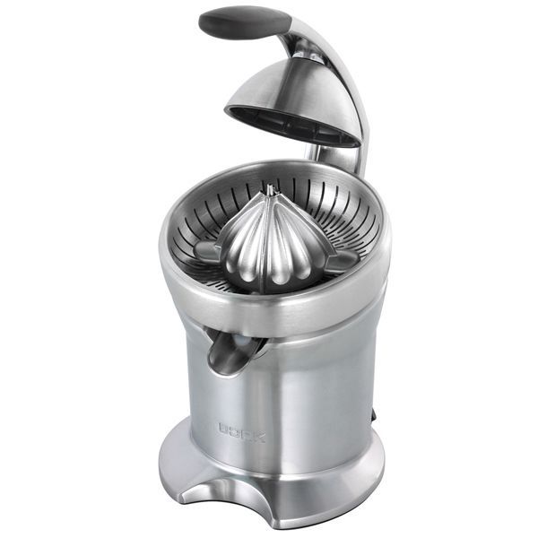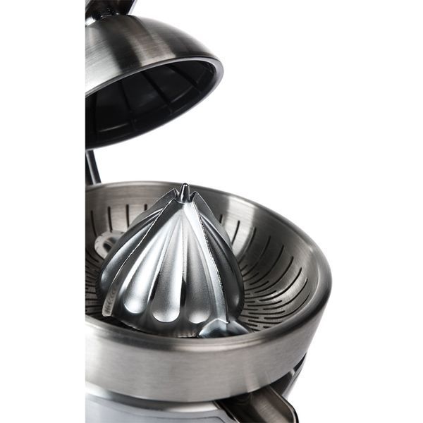 Комбинация механического пресса и электрического привода позволяет выжимать сок не прилагая больших усилий. Конструкция конуса обеспечит получение сока из всех видов цитрусовых и плодов граната.