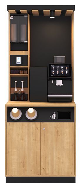 - Полная комплектация для кофепоинта - диспенсеры стаканов и крышек, органайзеры, подсветка, портал для мусора;