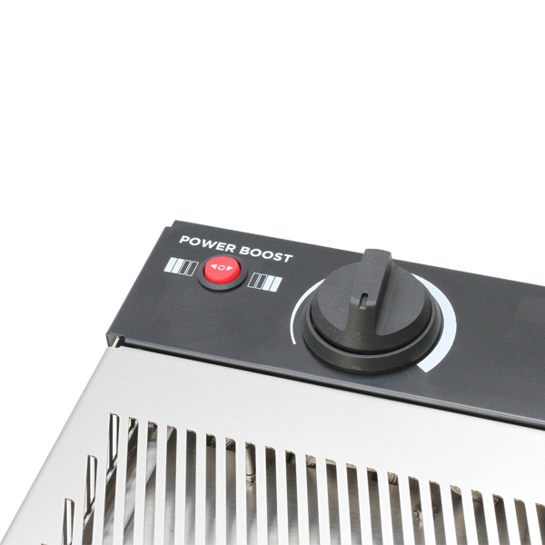 Группы прожекторов имеют бесступенчатую регулировку температуры. Высота решетки безопасно и легко изменяется при помощи специального рычага.