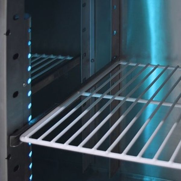 Изделие изготовлено из нержавеющей стали. Модель оснащена расположенным сбоку агрегатным отсеком, столешницей с задним бортом, 4 камерами с распашной дверцей, устойчивыми ножками с подпятниками, кабелем питания с евровилкой и кнопочной панелью управления с цифровым дисплеем.