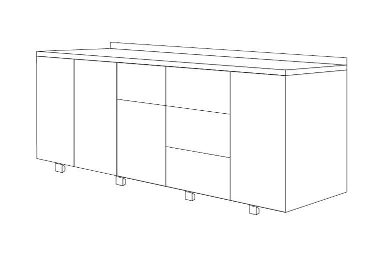 4 секции: 1-2 секции - двери, 3 секция - маленький + большой ящик, 4 секция - 3 маленьких ящика.