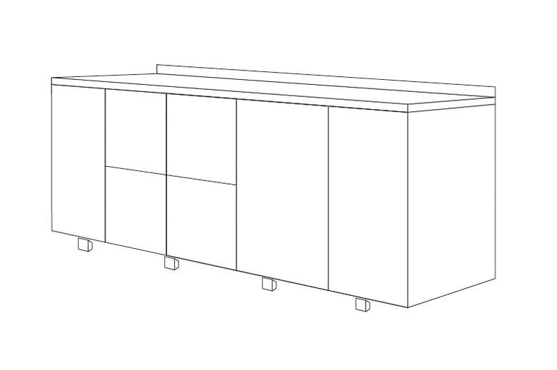 4 секции: 1 и 4 секции - двери, 2 и 3 секция - по 2 стандартных ящика.