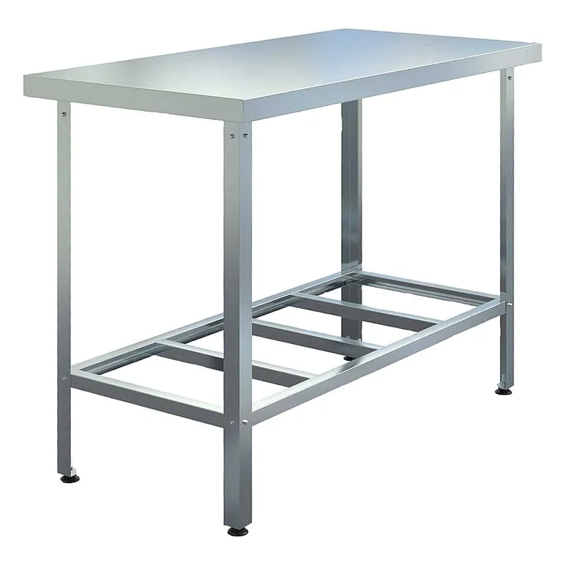 Ножки и столешница выполнены из нержавеющей стали AISI 430, рамка столешницы и полка из оцинкованной стали, столешница усилена листом ЛДСП. Модель имеет нижнюю полку-решетку. Напольное размещение стола рядом с рабочей зоной, обеспечивает скорость и качество работы.