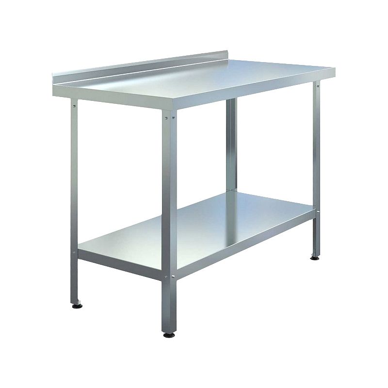 Ножки выполнены из уголка 40x40 мм нержавеющей стали AISI 430, столешница - из нержавеющей стали AISI 430, усиленной листом ЛДСП, рамка столешницы из оцинкованной стали, полка - из нержавеющей стали AISI 430. Модель имеет разборную конструкцию, с бортом.
