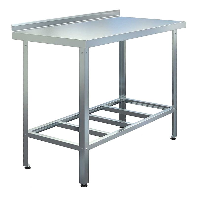 Материал столешницы из нержавеющей стали AISI 430, усиленной листом ЛДСП, полка-решетка и рамка столешницы - из оцинкованной стали, ножки - из уголка 40x40 мм оцинкованной стали. Модель оснащена регулируемыми по высоте пластиковыми опорами.