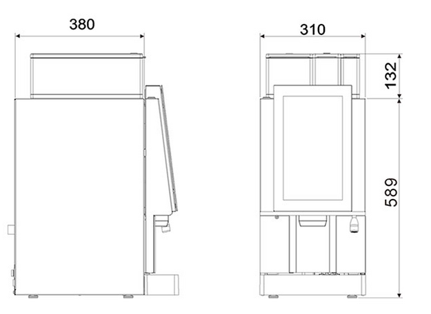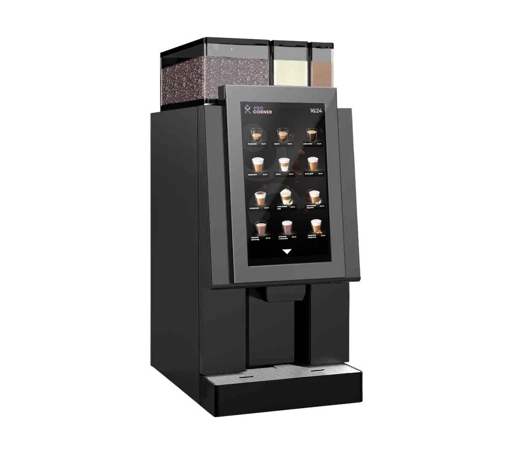 - 14-дюймовый вертикальный тачскрин-дисплей - расположен под удобным для пользователя углом, продажа более 20 напитков;