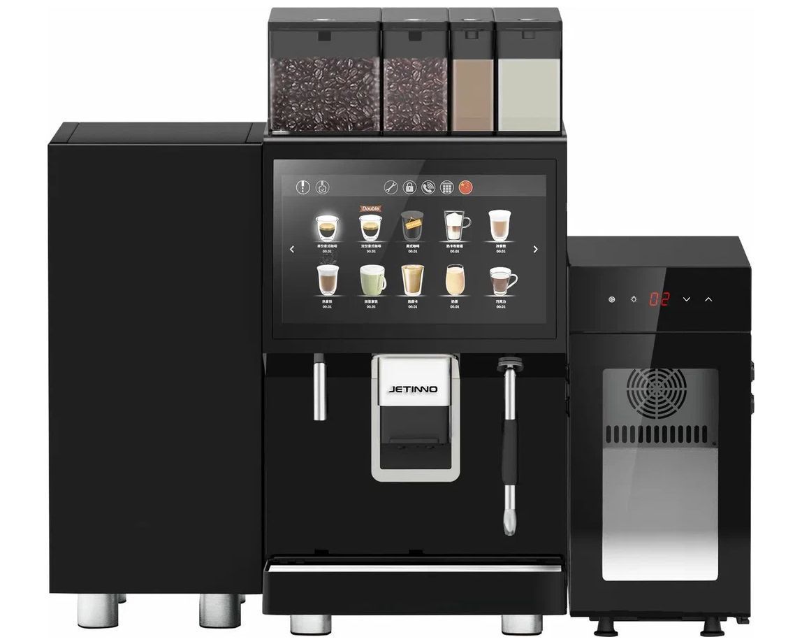 Кофемашина JL35-ES4CFM производства Jetinno (Китай) - профессиональная суперавтоматическая кофемашина премиум-класса со встроенным капучинатором SmartMilk для приготовления напитков из натурального молока с горячей и холодной пеной. Модель оснащена 14-дюймовым тачскрин-дисплеем на базе ОС Android, швейцарской кофемолкой Ditting EMH 64, расширенным модулем растворимых ингредиентов и модульным дизайном. Предназначена для кафе, ресторанов, кофеен, супермаркетов, торговых центров и офисов сегмента HoReCa с высокими требованиями к качеству молочных напитков и широкому ассортименту.