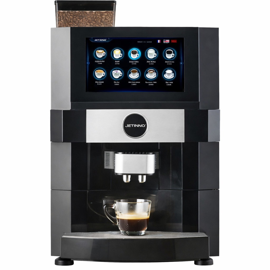 Кофемашина JLTTN-ESFB4C-10A производства Jetinno (Китай) - профессиональная настольная суперавтоматическая кофемашина с 10-дюймовым сенсорным ЖК-дисплеем, швейцарской кофемолкой Ditting EK7 и уникальным модулем для заваривания свежего листового чая. Коммерческая модель предназначена для сегмента HoReCa, офисов и точек самообслуживания. Компактный настольный формат, высокий ресурс жерновов 260 000 порций и удалённый мониторинг через облачный сервер обеспечивают надёжную работу без постоянного присутствия персонала.