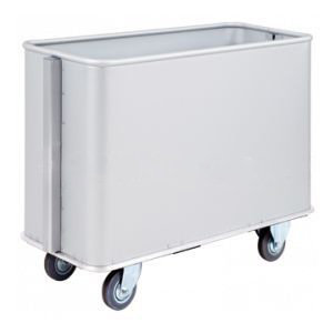 - тележки для сбора белья представлены в различных вариациях - простая решетчатая конструкция на колесах или же передвижная емкость со сплошным корпусом (в прачечных, как правило, используются оба вида тележек);