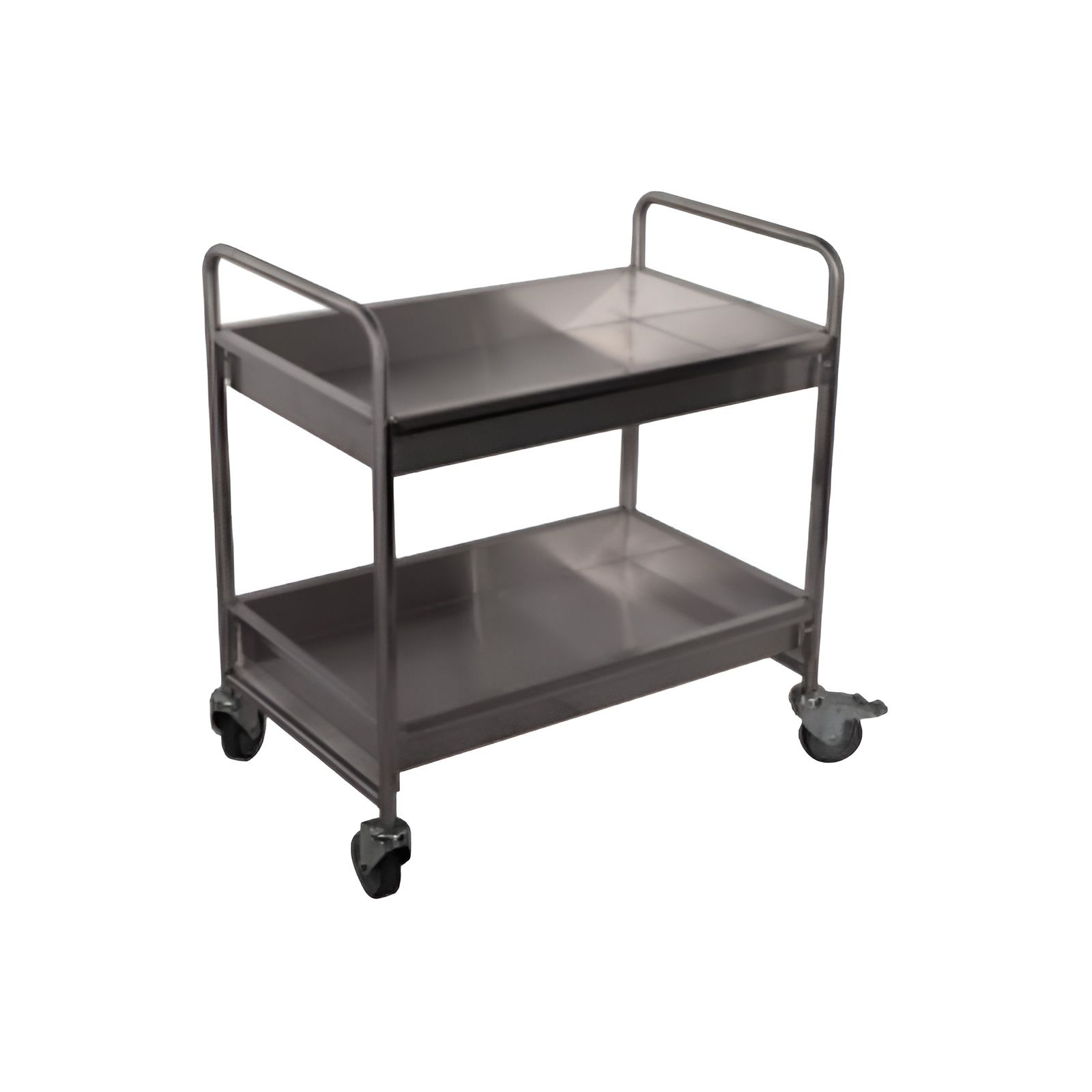 Каркас из профильной трубы, прошедшей гальваническую обработку и окрашенной порошковой краской, изготовлена из нержавеющей стали AISI 304. Модель оснащена 2 полками и колесами, смягчающими вибрацию, 2 из которых с блокираторами.