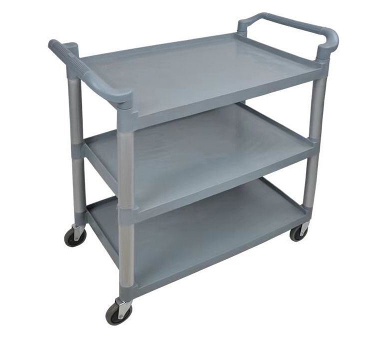 Тележка HKN-TSP3M производства Hurakan (Китай) используется для сервировки обеденных залов, а также для сбора и перевозки грязной посуды на предприятиях общественного питания.