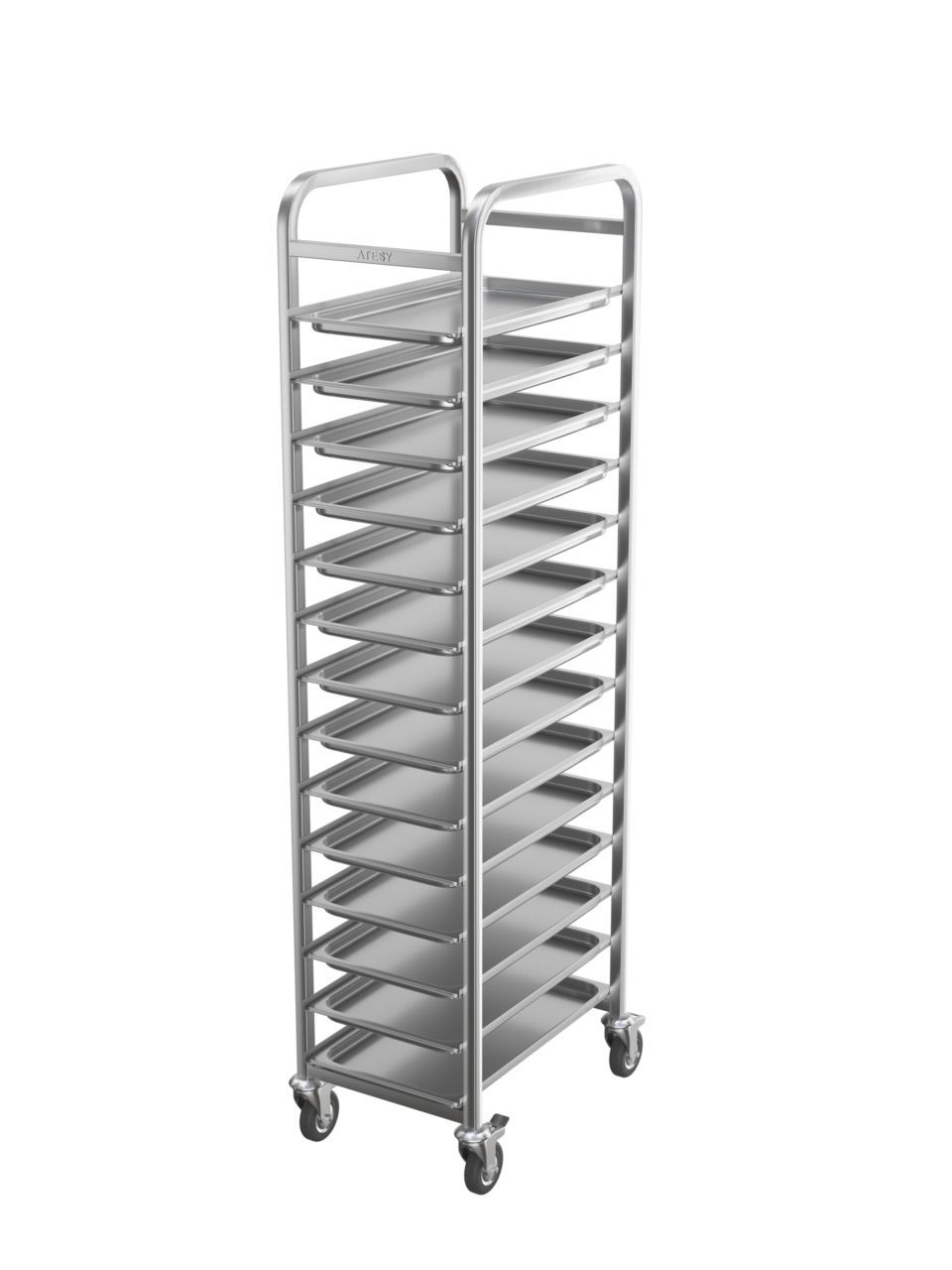 Шпилька Atesy серии Люкс имеет сварную конструкцию. Направляющие изготовлены из нержавеющей стали AISI 304. Они имеют концевые отгибы, обеспечивающие фиксацию противней. Рамы приварены друг к другу и сделаны из нержавеющей стали AISI 304 в виде трубы квадратного сечения (размер - 25х25 мм, толщина - 1,5 мм).