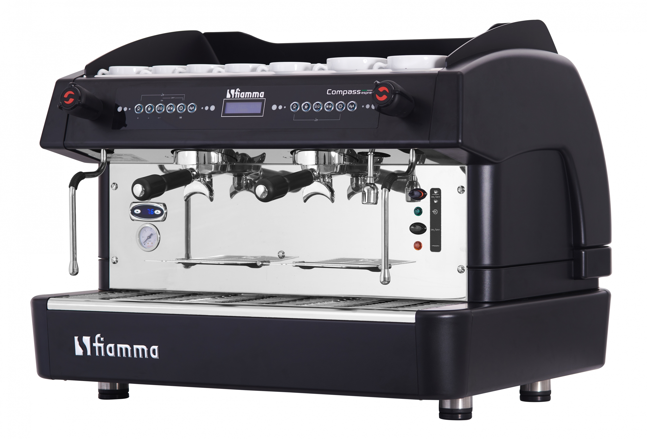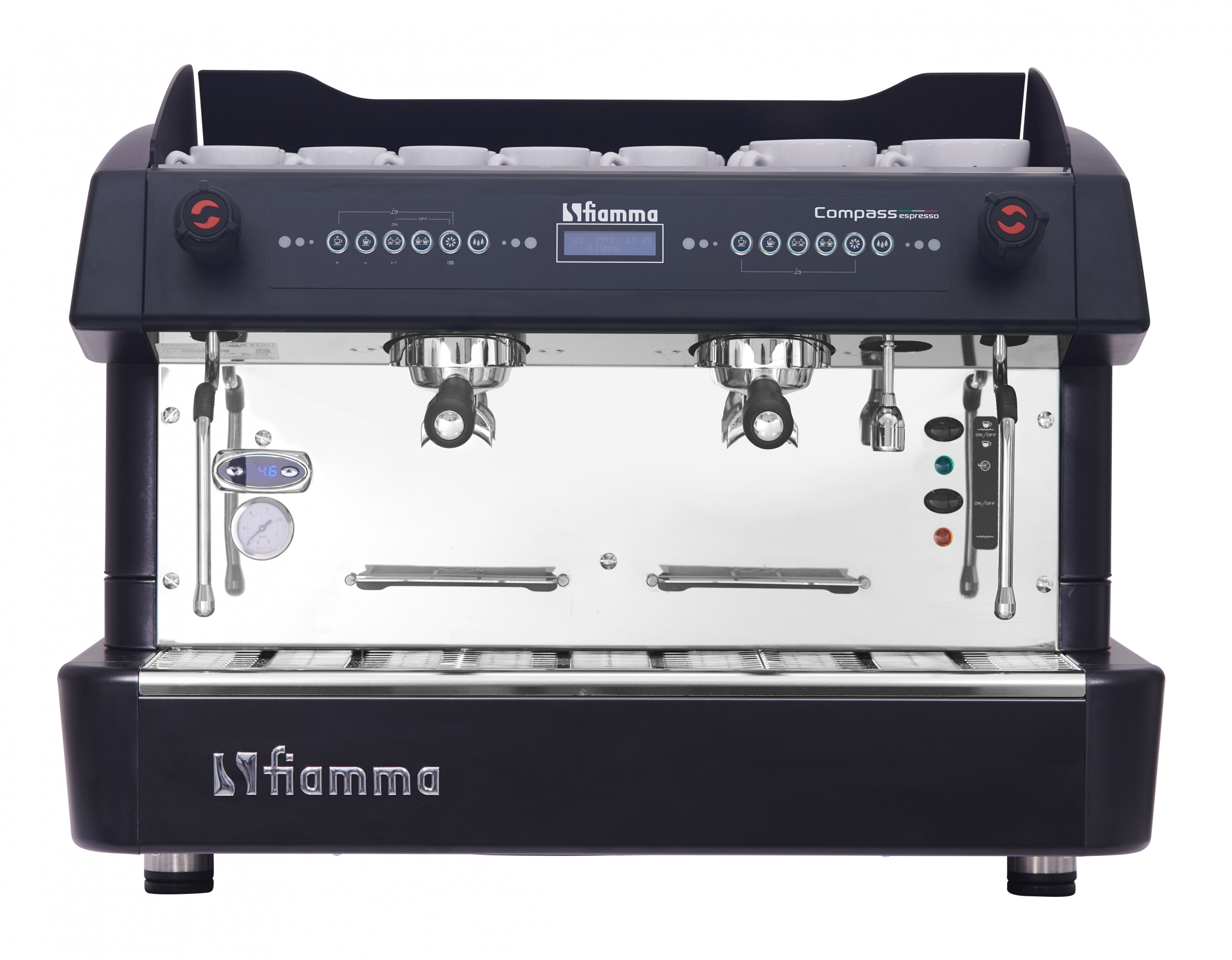 Кофемашина Compass 2 DB TC Black производства FIAMMA (Португалия) используется для варки капучино, эспрессо и других напитков из кофе.