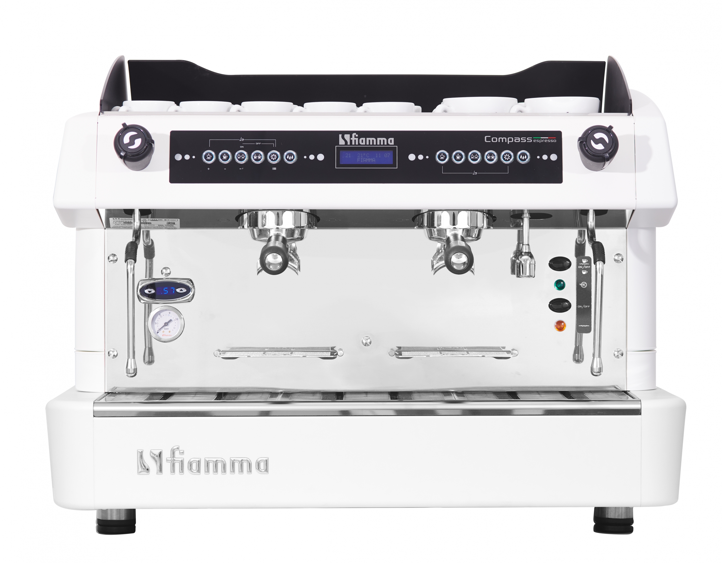 Кофемашина Compass 2 DB TC White производства FIAMMA (Португалия) используется для варки капучино, эспрессо и других напитков из кофе.
