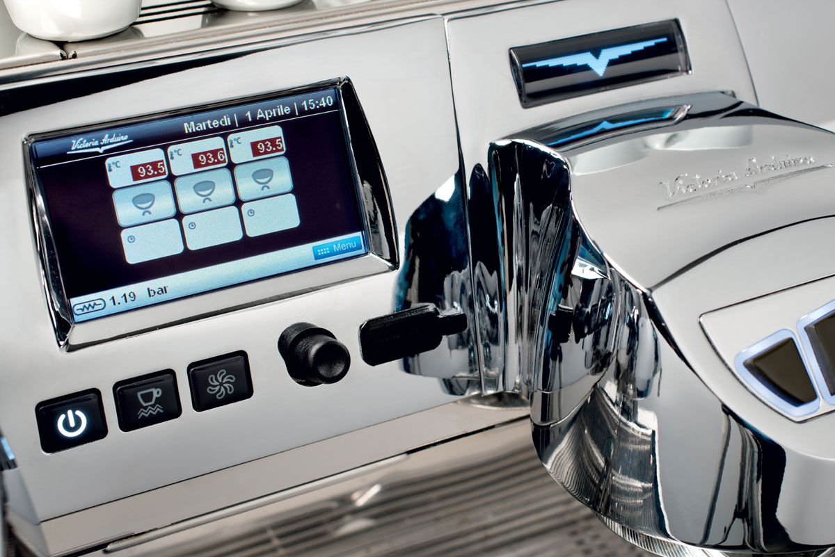 Вся полнота информации о работе кофемашины выводится на дисплей. VA358 словно ведет диалог с бариста и делится информацией, полученной от системы Т3 и гравиметирческой системы в режиме реального времени. Дисплей показывает температуру паровых котлов, кофе, группы, время ожидания и объем жидкости в чашке.