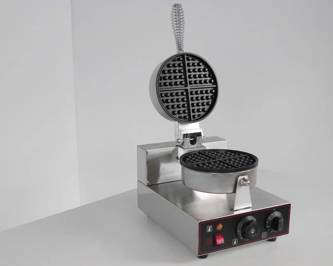 Вафельница HWB-1 производства Rosso (Китай) - профессиональное оборудование для приготовления 4 треугольных бельгийских вафель одновременно на предприятиях общественного питания и торговли. Модель с одной рабочей секцией подходит для подачи вафель с различными соусами, ягодами, фруктами и мороженым.