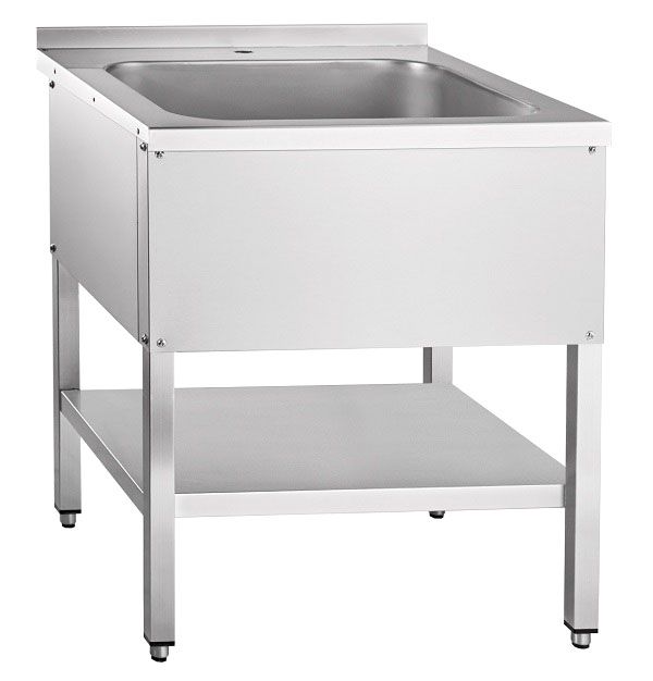 Конструкция разборная, все элементы выполнены из нержавеющей стали. Оснащена одной цельнотянутой ванной, защитным бортиком, регулируемыми обрезиненными ножками и сифоном для слива.