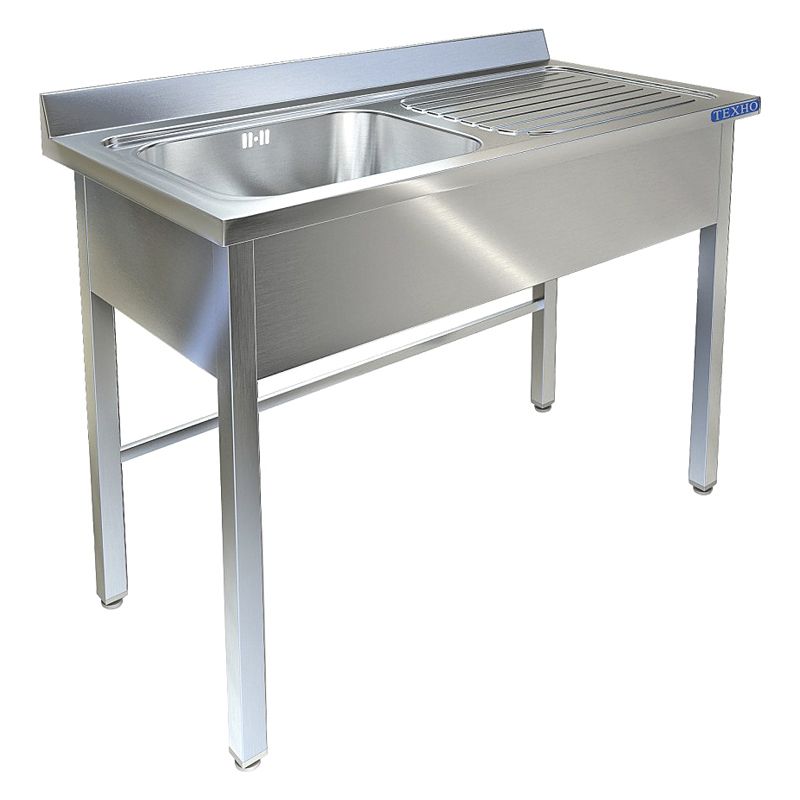 Изделие выполнено из нержавеющей стали AISI 304. Модель оснащена рифленой рабочей поверхностью, шумопоглощающей изоляцией снизу мойки и регулируемыми по высоте ножками, что позволяет компенсировать неровности пола.