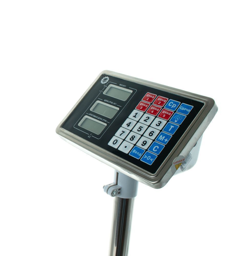 Прибор оснащен жидкокристаллическим табло, которое отображает: вес (5 цифр), цену за единицу товара (5 цифр) и общую стоимость (6 цифр). Для ввода информации используется влагостойкая клавиатура, объединенная с дисплеем.