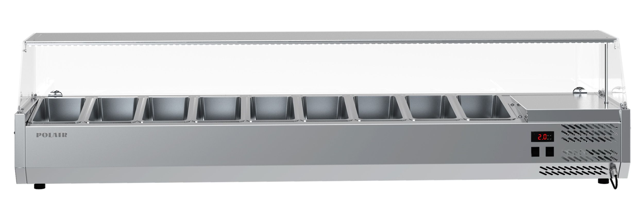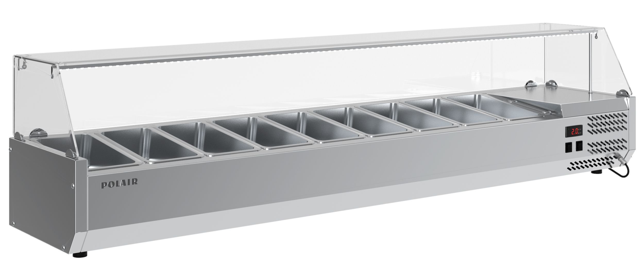 Витрина холодильная VT3VEN (1/3) производства Polair (Россия) – используется для кратковременного хранения ингредиентов при приготовлении пиццы и салатов, а так же демонстрации и продажи предварительно охлажденных пищевых продуктов. Применяется в кафе, ресторанах, столовых, на производстве и различных предприятиях общественного питания.